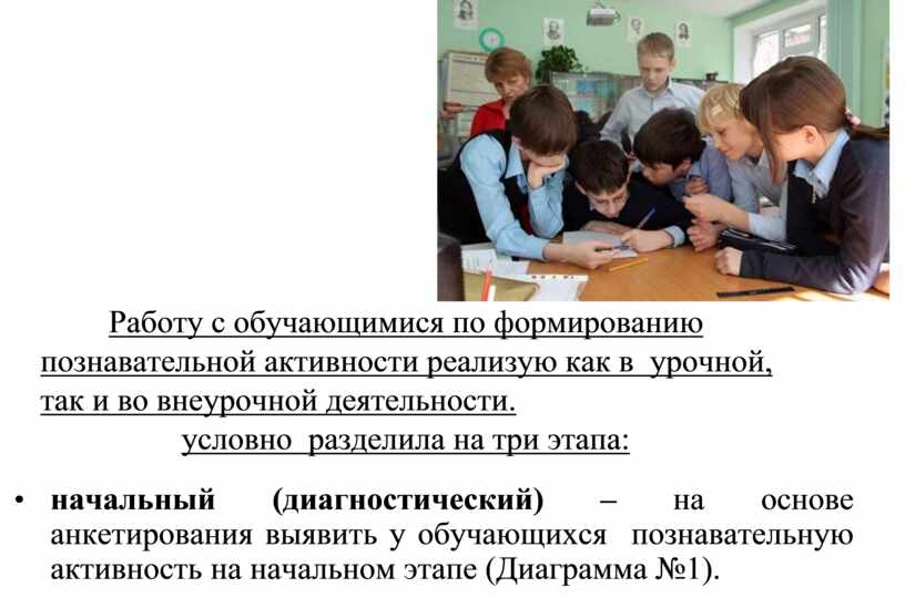 • начальный (диагностический) – на основе анкетирования выявить у обучающихся познавательную активность на начальном этапе (Диаграмма №1).