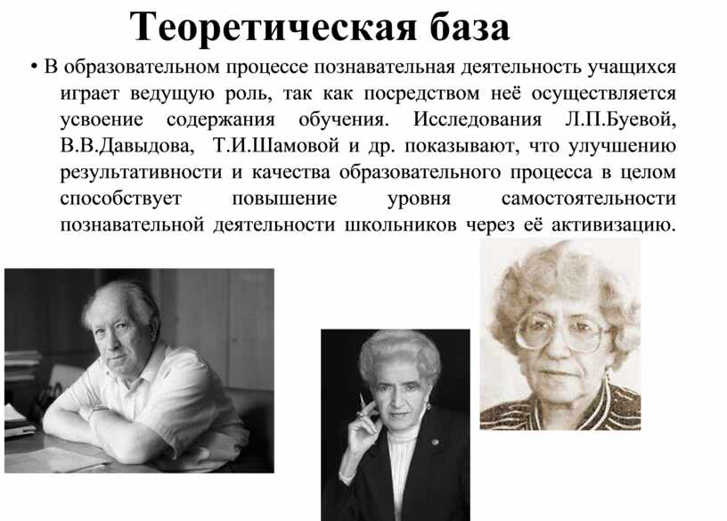 Исследования Л.П.Буевой, В.В.Давыдова, Т.И.Шамовой и др. показывают, что