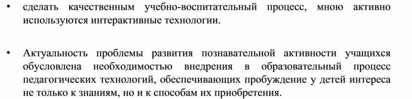 Использование интерактивных технологий в учебном процессе предполагает повышение качества образования, т. е. решение одной из насущных проблем для современного общества:
