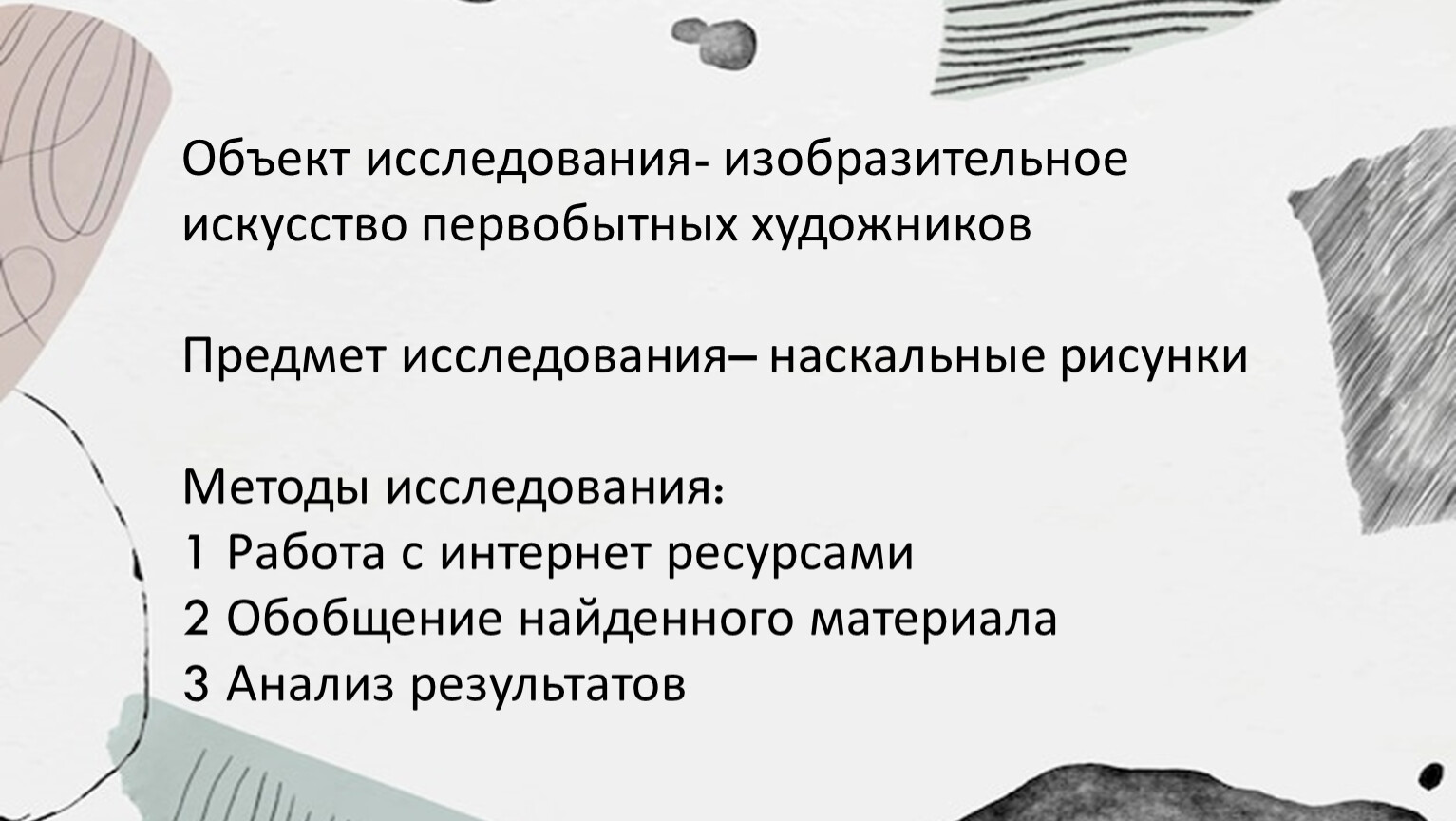 Объект исследования- изобразительное искусство первобытных художников