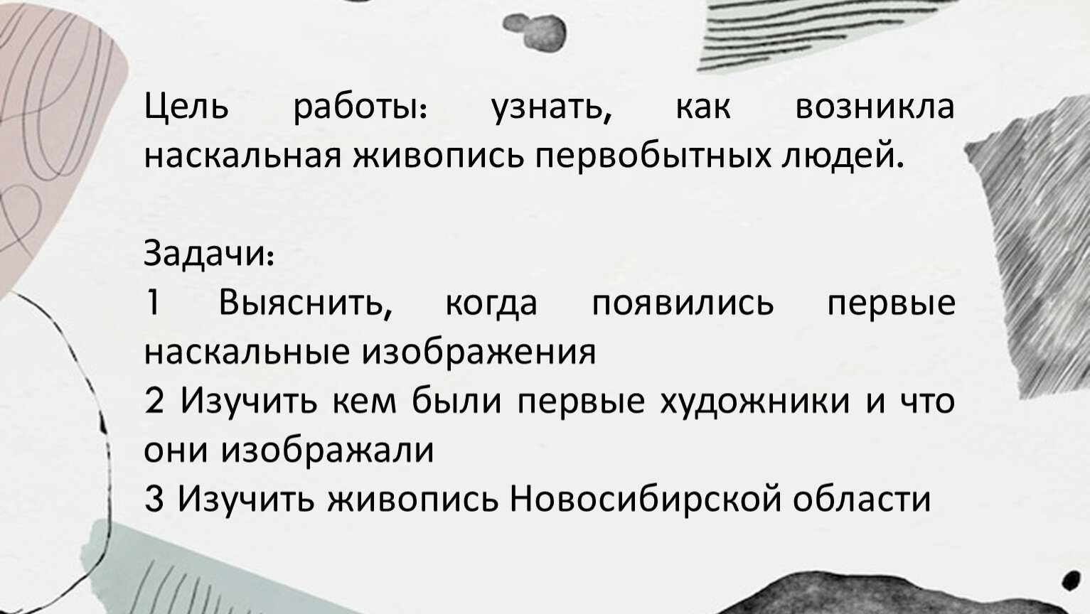 Цель работы: узнать, как возникла наскальная живопись первобытных людей.