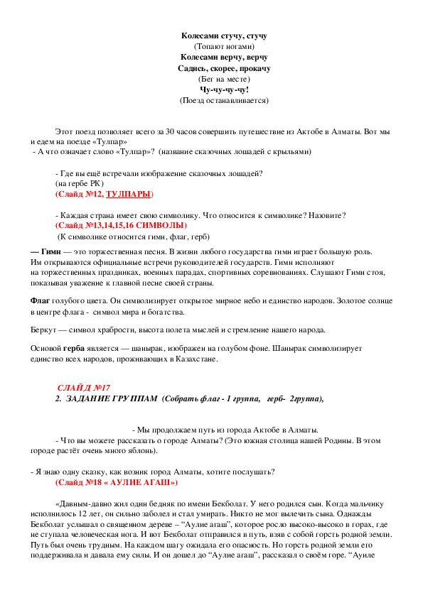 Казахстана. Закрепить знания о государственной символике. Познакомить с преданием и казахской