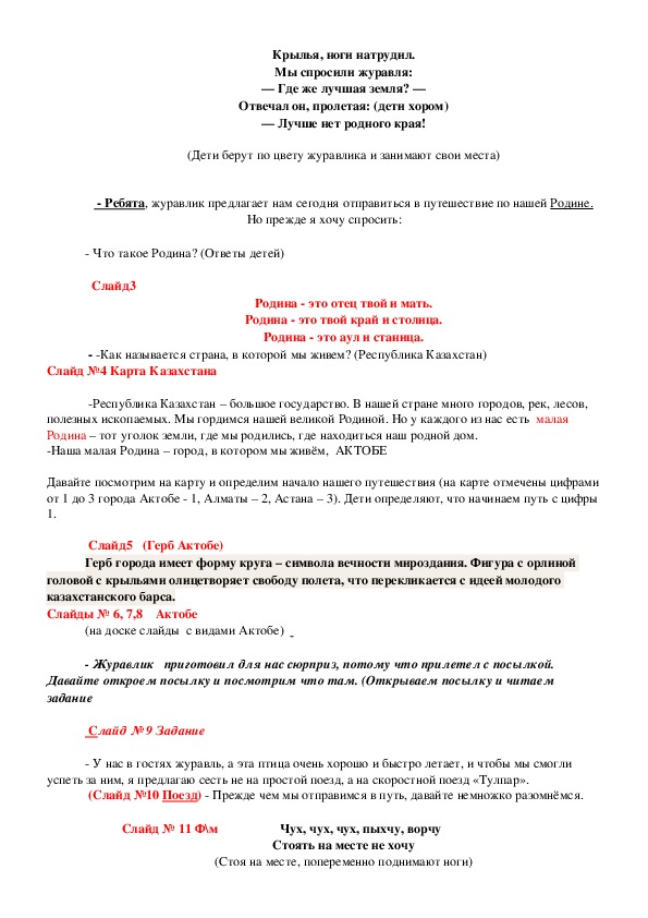 Родину, проявлять бережное и заботливое отношение к природе Республики Казахстан.