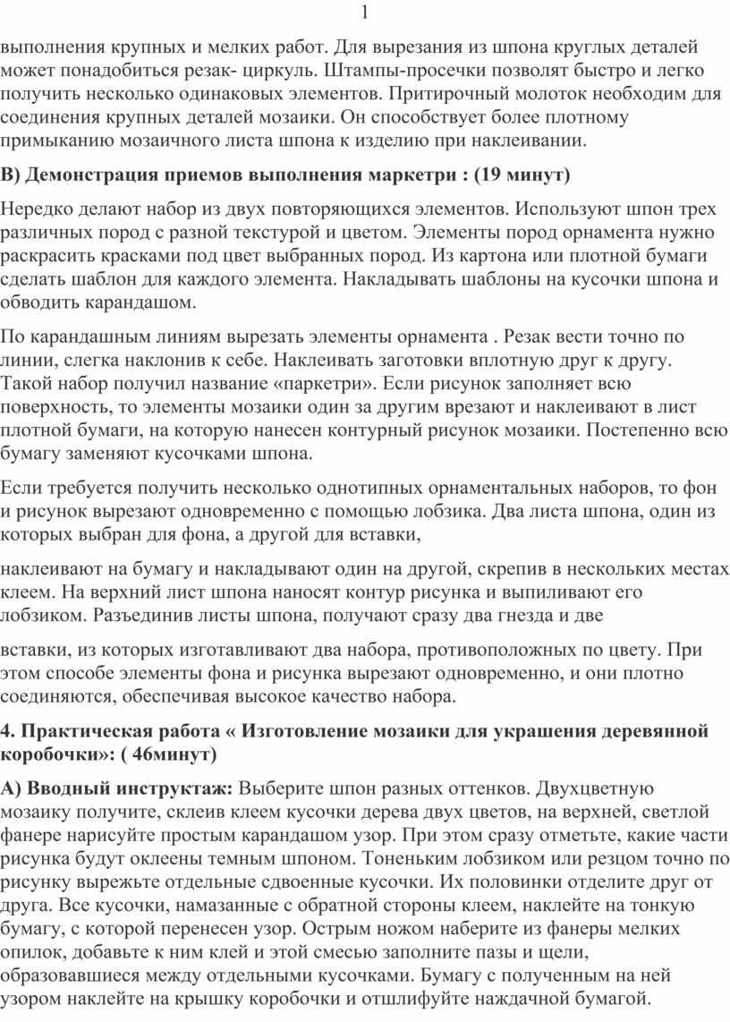 В) Демонстрация приемов выполнения маркетри : (19 минут)