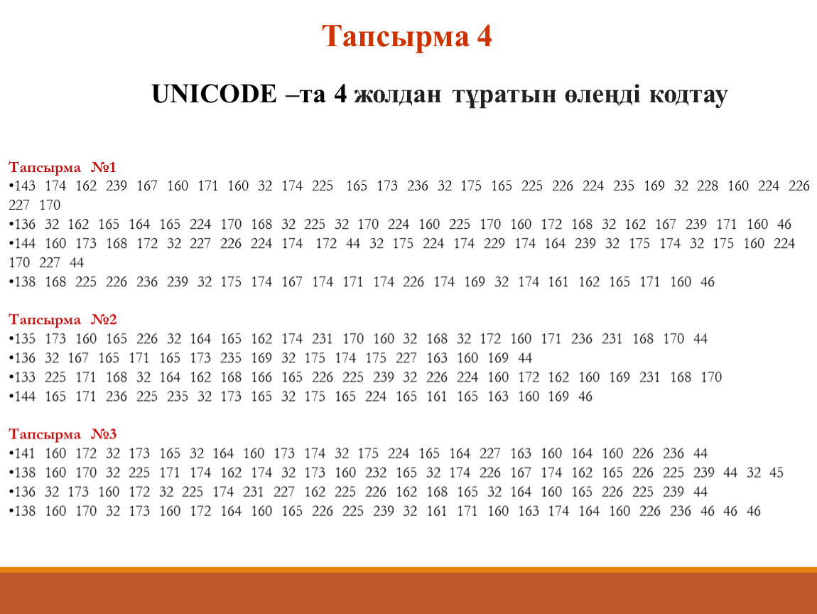 Тапсырма 2.Жұптық жұмыс Таңбаны кодтау