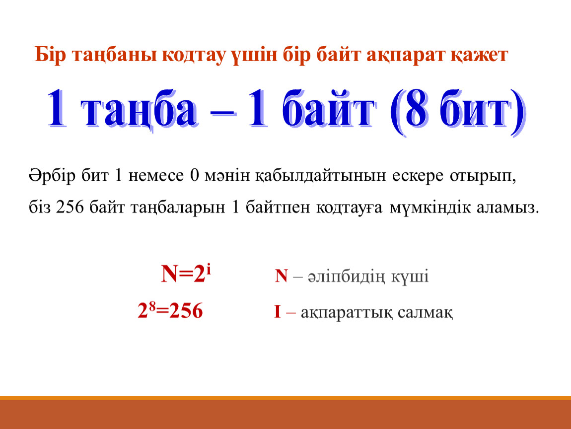 Бір таңбаны кодтау үшін бір байт ақпарат қажет