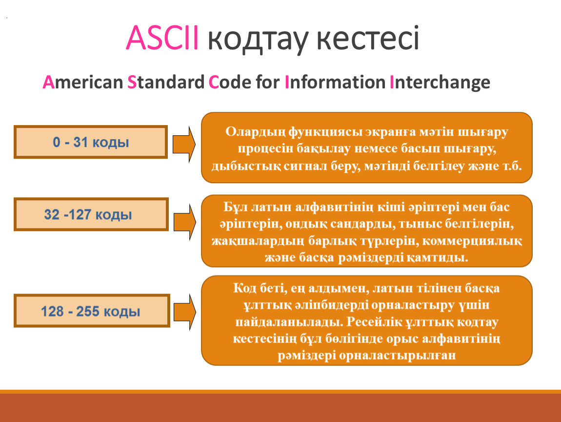 ASCII кодтау кестесін пайдалана отырып, ақпаратты кодтай алады;