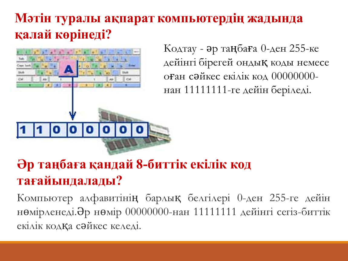 Мәтін туралы ақпарат компьютердің жадында қалай көрінеді?