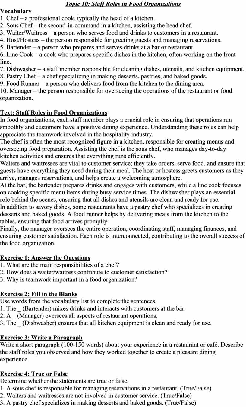 3. Напишите о рабочем дне официанта с опорой на текст и вопросы к тексту.