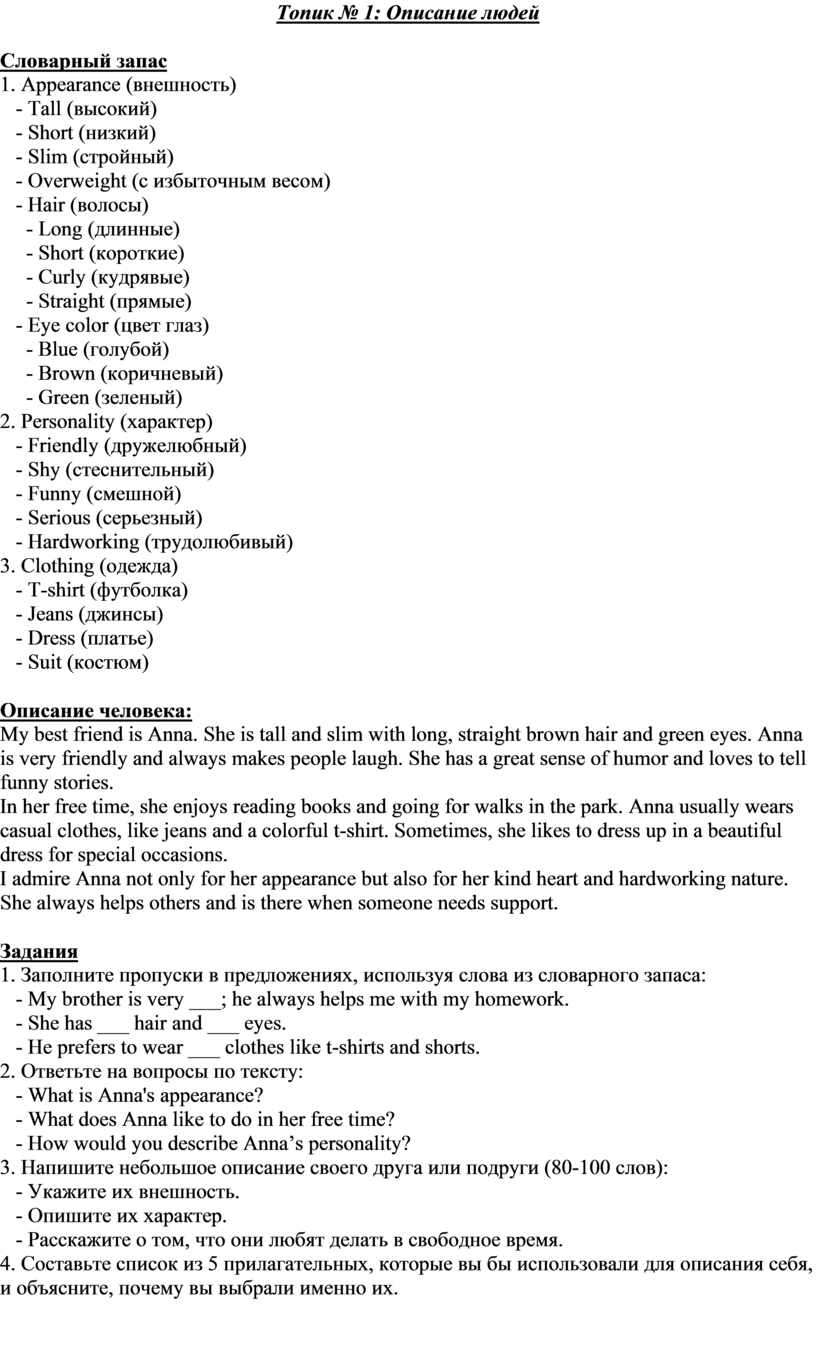 3. Напишите небольшое описание своего друга или подруги (80-100 слов):