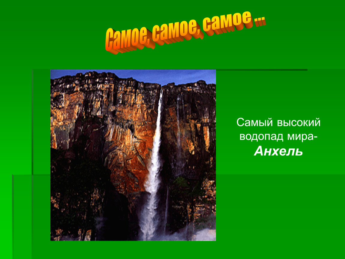 - В Южной Америке находится самый высокий водопад в мире