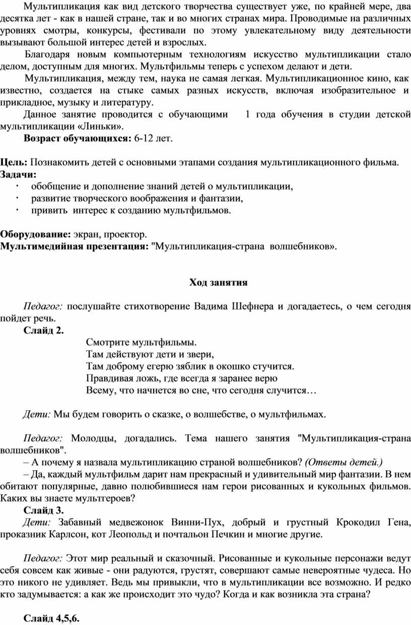 (конспект занятия по анимации)