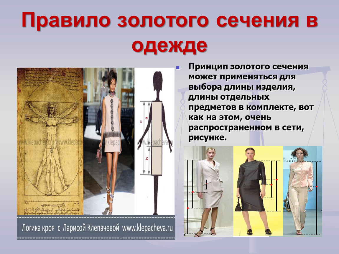 Принцип золотого сечения может применяться для выбора длины изделия, длины отдельных предметов в комплекте, вот как на этом, очень распространенном в сети, рисунке.