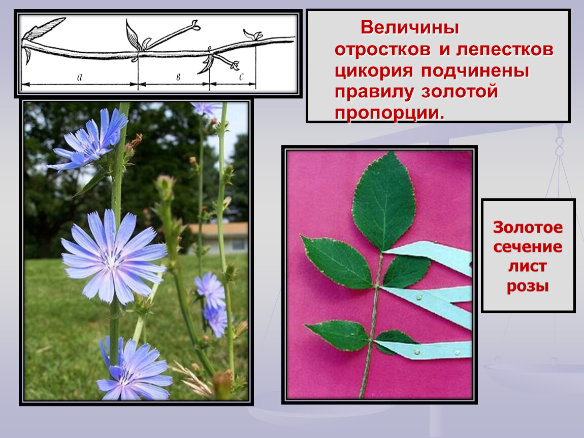 Величины отростков и лепестков цикория подчинены правилу золотой пропорции.