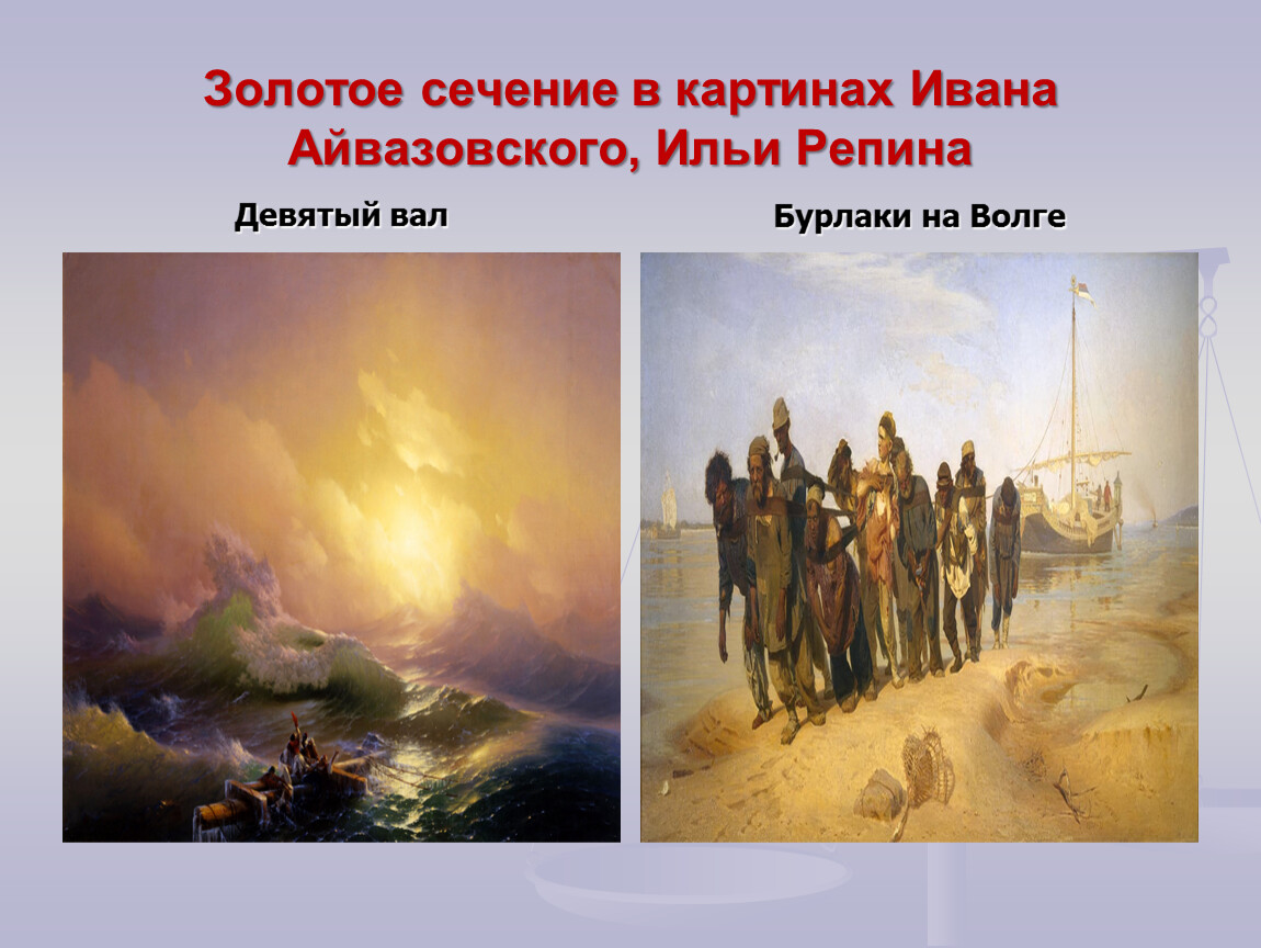 Связь с искусством и архитектурой. Многие выдающиеся мастера прошлого, создавшие шедевры русской культуры (Айвазовский, Шишкин, Васнецов, Палехская миниатюра), осознанно или бессознательно руководствовались принципом золотого сечения. Таким образом, эта пропорция стала частью коллективного художественного наследия, объединяющего россиян независимо от их происхождения.