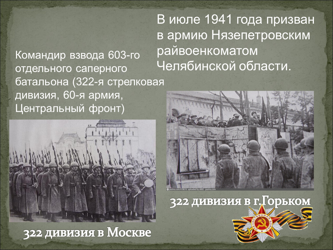 Командир взвода 603-го отдельного саперного батальона (322-я стрелковая дивизия, 60-я армия, Центральный фронт)