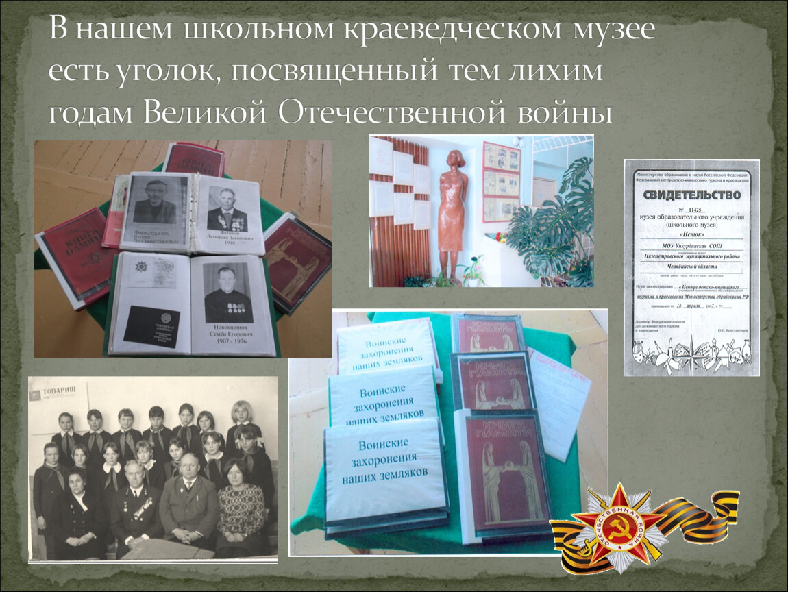 В нашем школьном краеведческом музее есть уголок, посвященный тем лихим годам Великой Отечественной войны