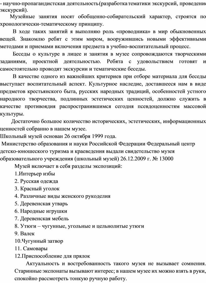 детско-юношеского туризма и краеведения выдали свидетельство музея образовательного