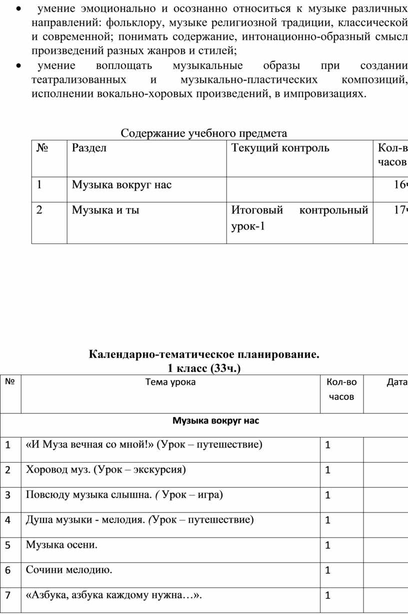 На изучение музыки в 1 классе начальной школы выделяется 33 часа