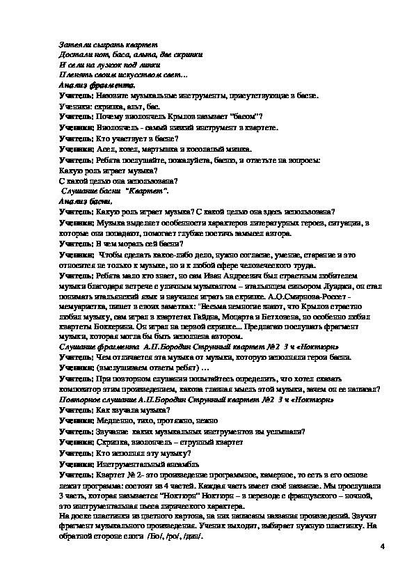 4. Слушание басни И.А.Крылова «Квартет» 4 мин