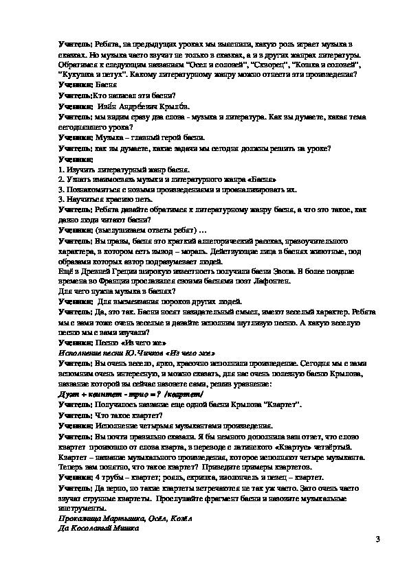 Учитель: Чем отличается эта музыка от музыки, которую исполняли герои басни.