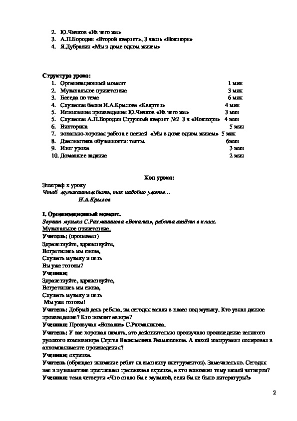 Учитель: Квартет № 2 это произведение программное, камерное, то есть в его основе