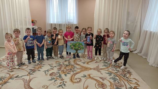 Оборудование: Плакат «Дерево» , отдельные картинки изображений птиц и птенчиков, по количеству детей, металлофон (либо две разные по звучанию погремушки, или два разных колокольчика по тональности)