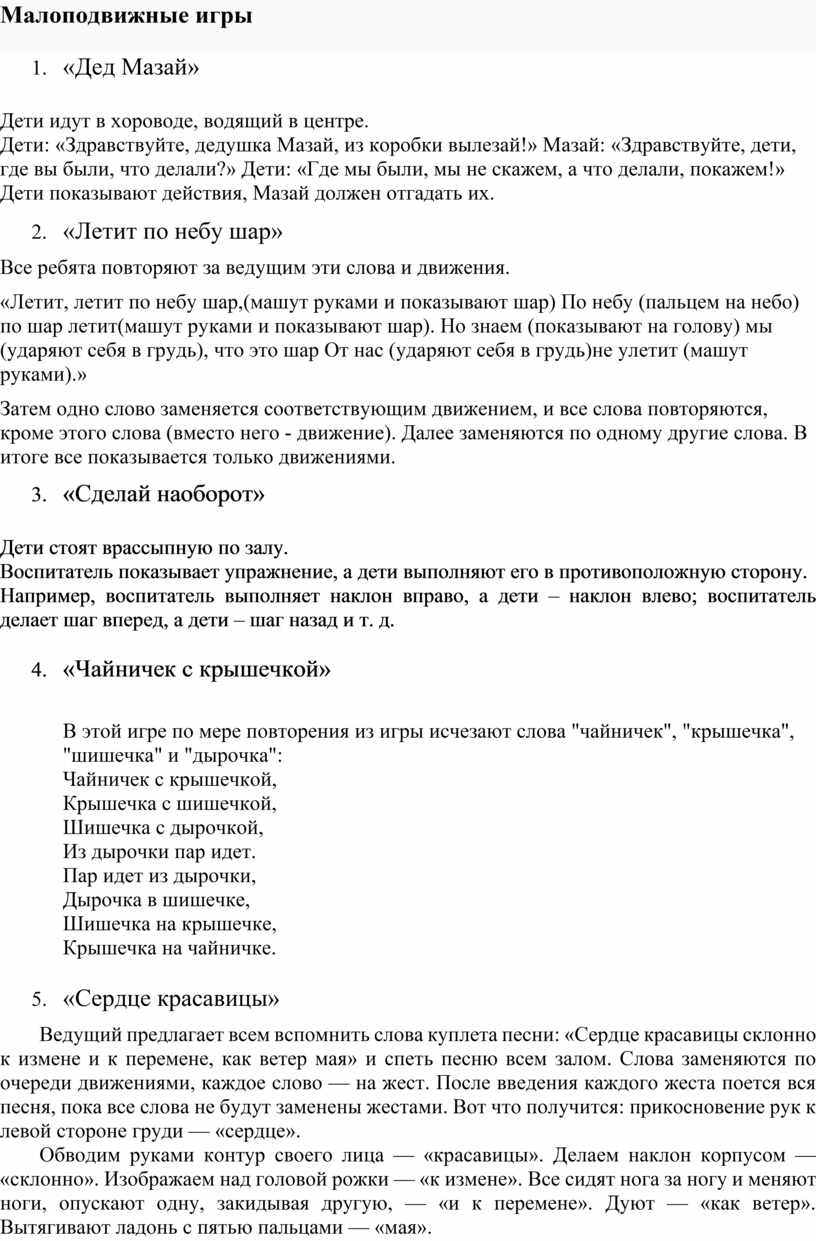 Малоподвижные игры