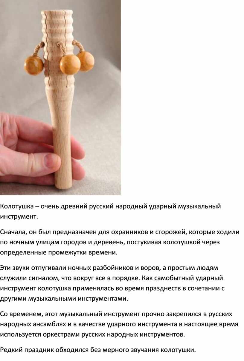 Колотушка – очень древний русский народный ударный музыкальный инструмент.