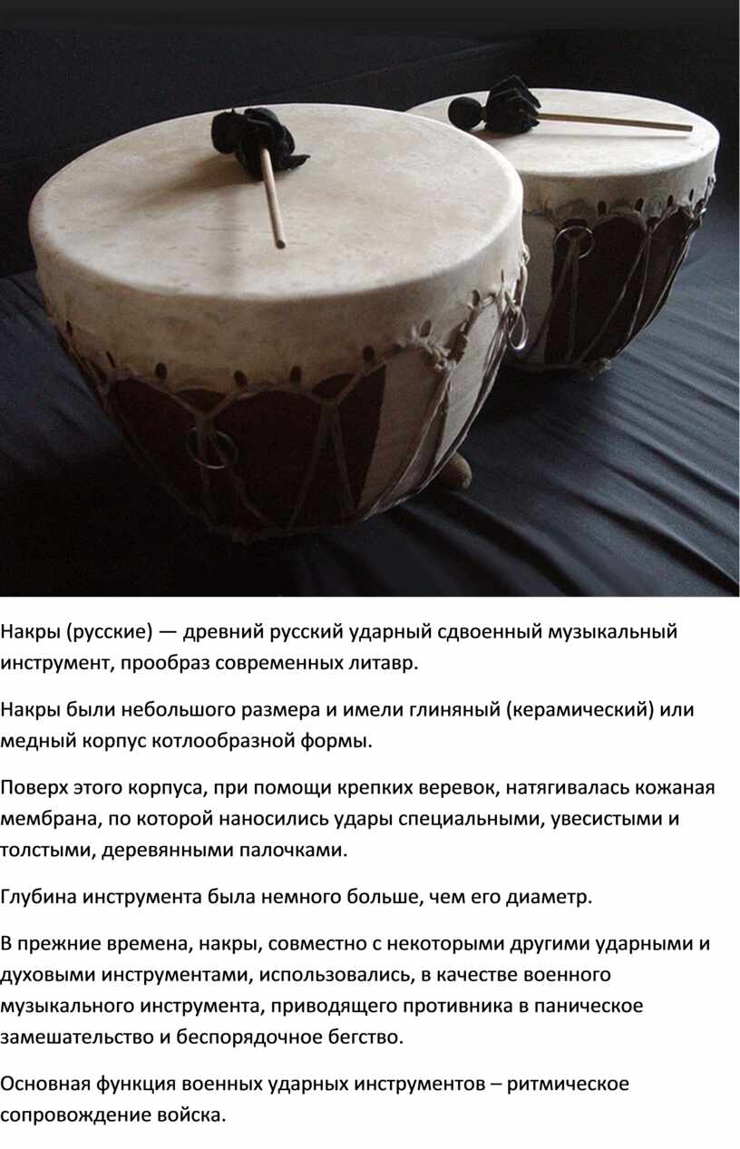 Накры были небольшого размера и имели глиняный (керамический) или медный корпус котлообразной формы.