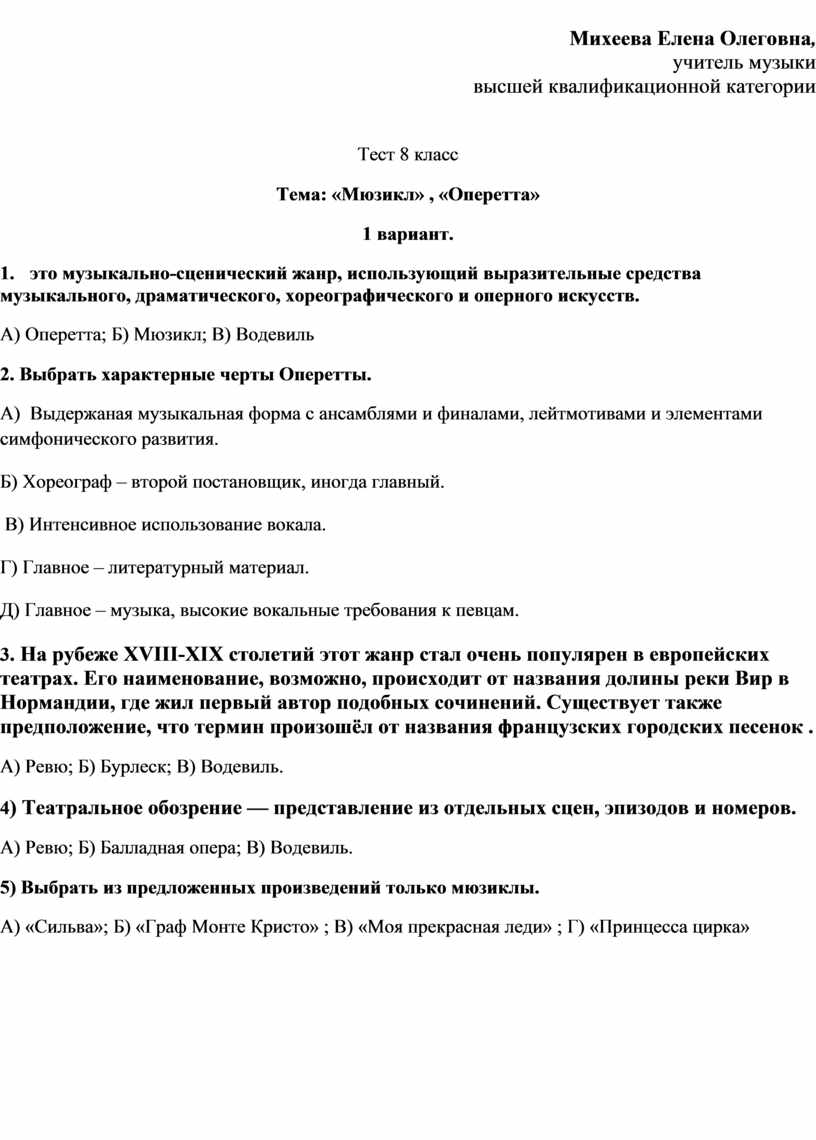 1. это музыкально-сценический жанр, использующий выразительные средства музыкального, драматического, хореографического и оперного искусств.