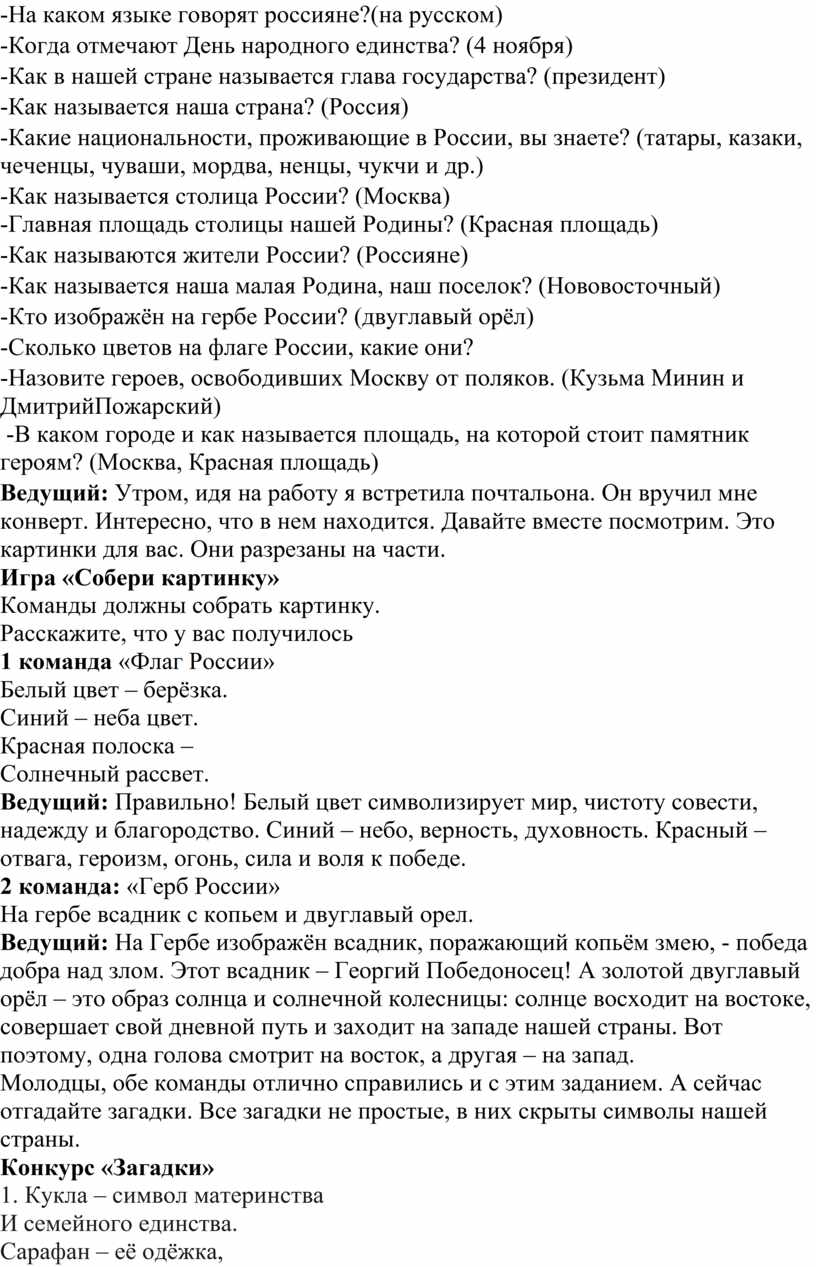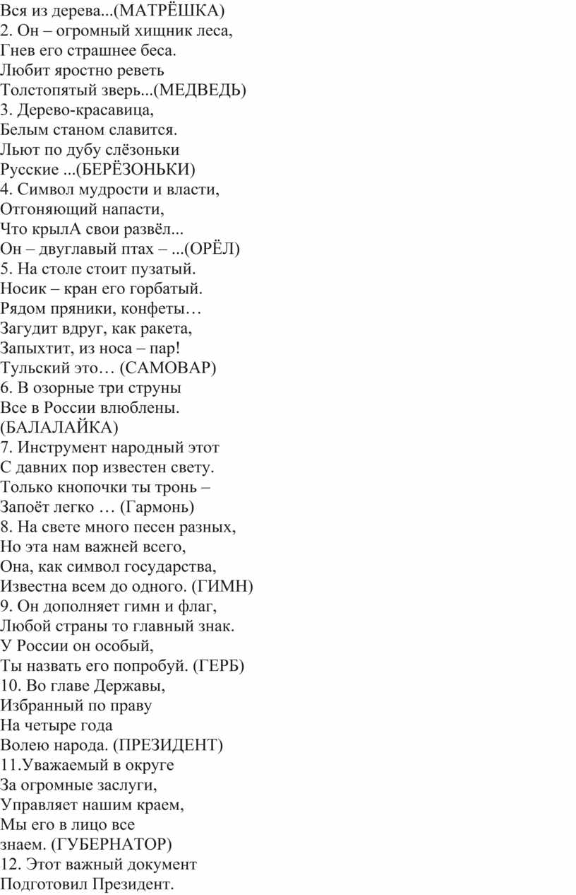 Молодцы, обе команды отлично справились и с этим заданием. А сейчас отгадайте загадки. Все загадки не простые, в них скрыты символы нашей страны.