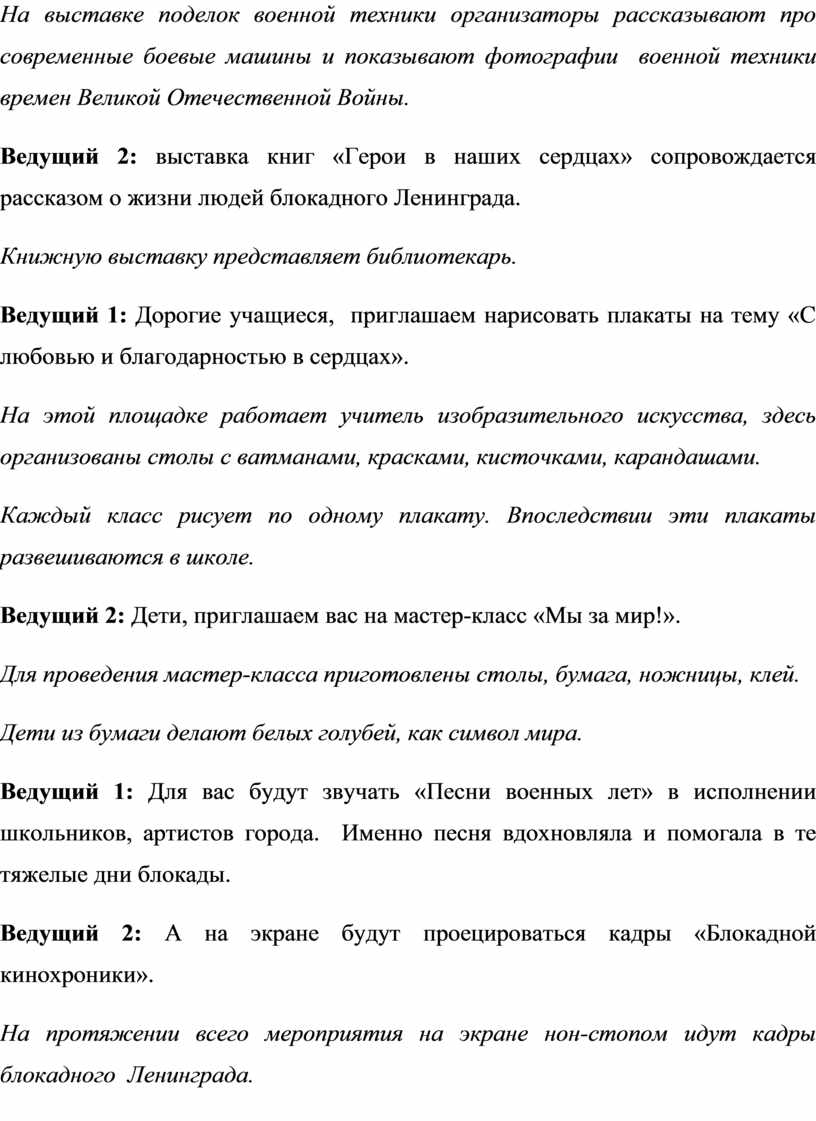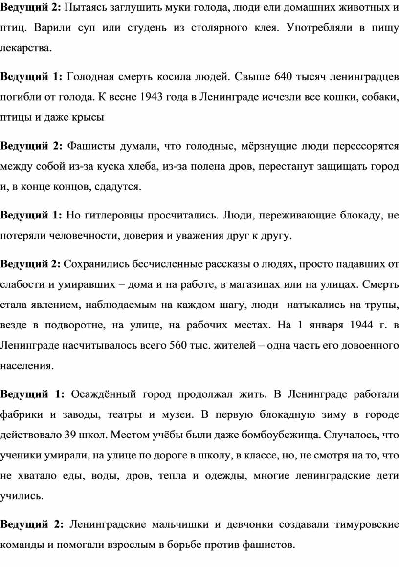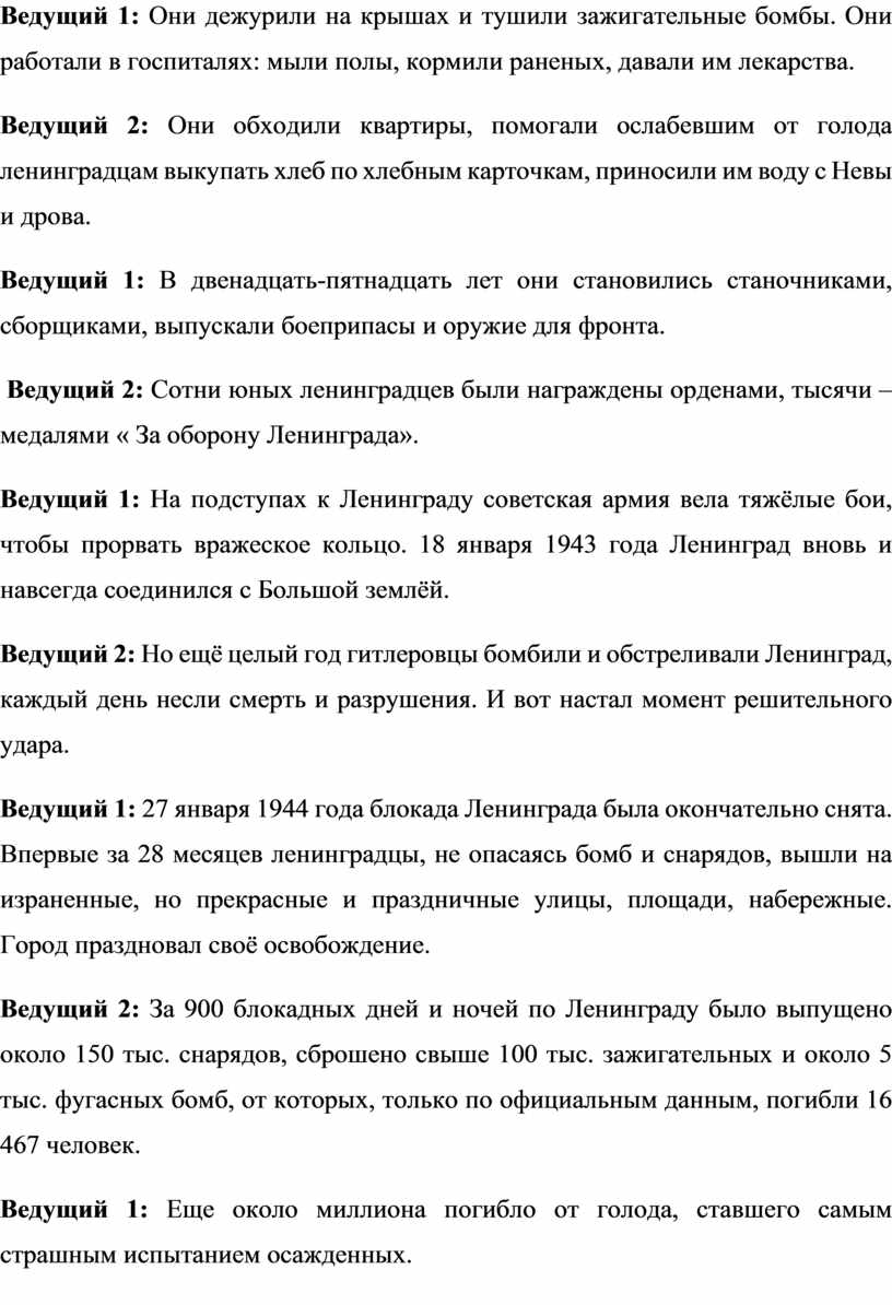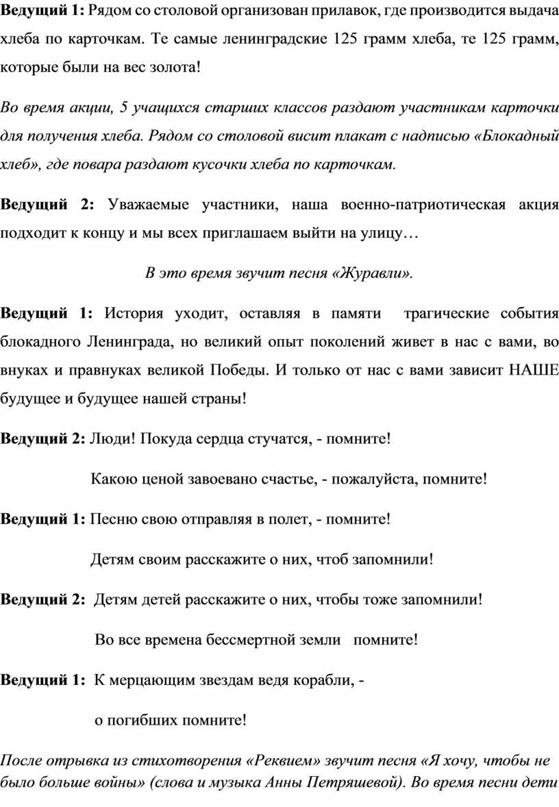 Ведущий 2: Итак, мы начинаем нашу военно-патриотическую акцию «Мы помним подвиг Ленинграда!»!