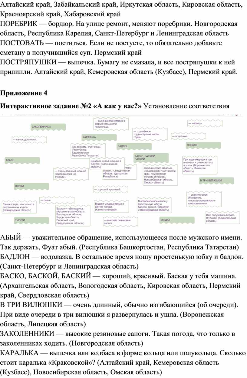 Интерактивное задание №2 «А как у вас?» Установление соответствия