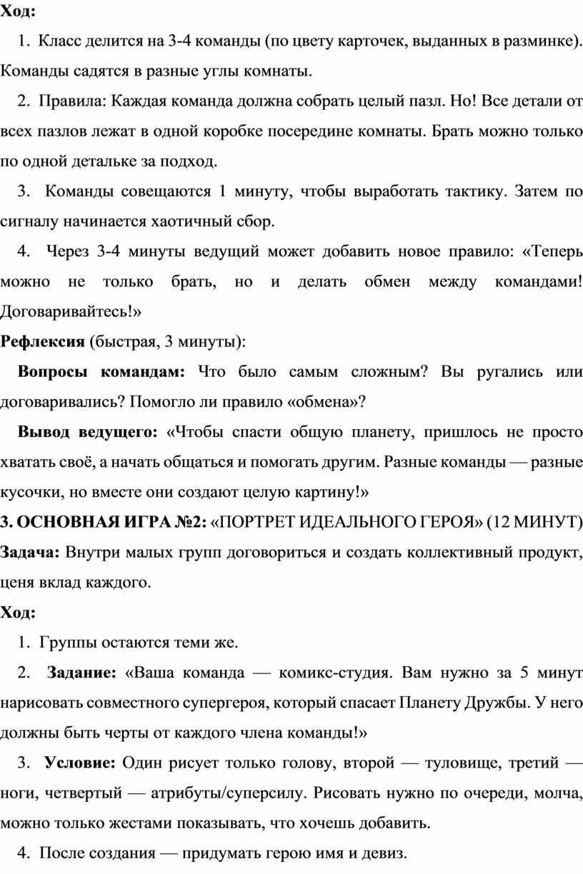 Вывод ведущего: «Чтобы спасти общую планету, пришлось не просто хватать своё, а начать общаться и помогать другим. Разные команды — разные кусочки, но вместе они создают целую картину!»