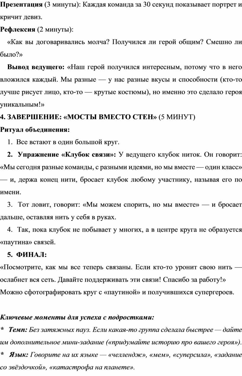 4. ЗАВЕРШЕНИЕ: «МОСТЫ ВМЕСТО СТЕН» (5 МИНУТ)