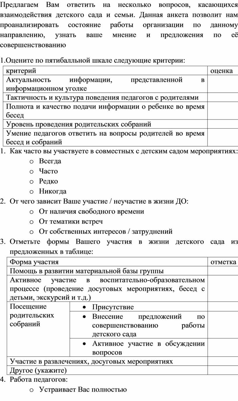 3. Отметьте формы Вашего участия в жизни детского сада из предложенных в таблице: