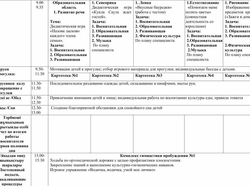 Тәрбиеші жұмысының қорытынды есебі Учет по итогам работы воспитателя Первая половина дня |