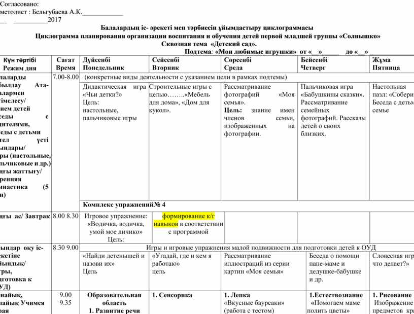 Балалардың іс- әрекеті мен тәрбиесін ұйымдастыру циклограммасы