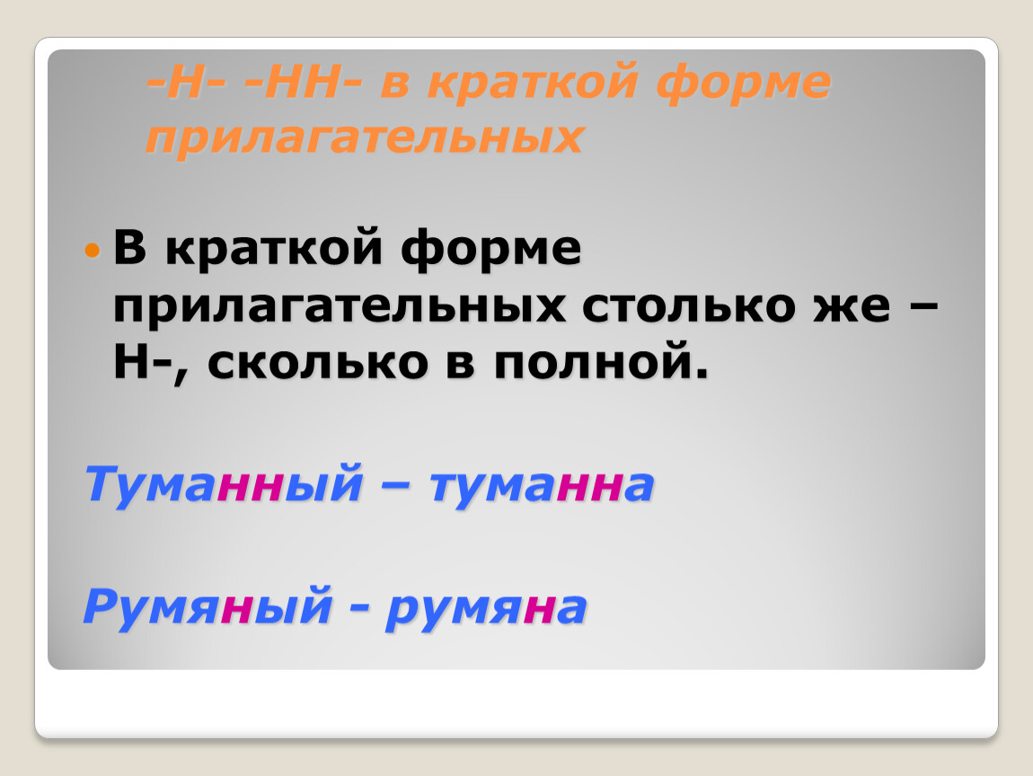 В краткой форме прилагательных столько же –Н-, сколько в полной.