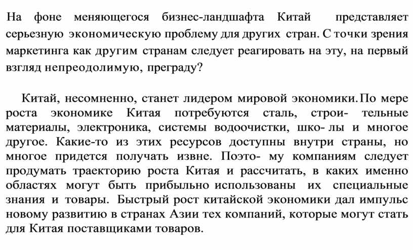 На фоне меняющегося бизнес-ландшафта Китай представляет серьезную экономическую проблему для других стран. С точки зрения маркетинга как другим странам следует реагировать на эту, на первый взгляд непреодолимую, преграду?