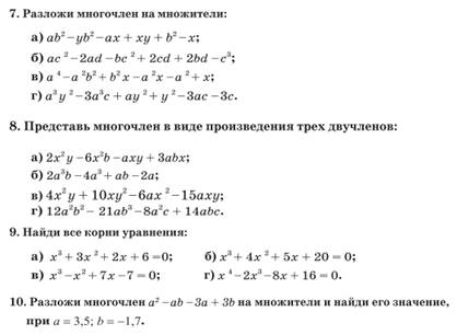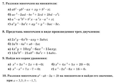 7.3В: Формулы сокращенного умножения. Разложения многочлена на множители. |