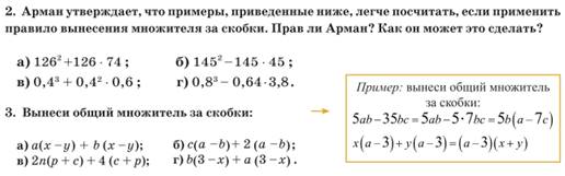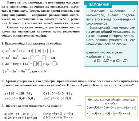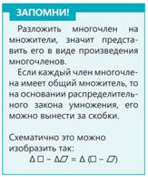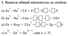 Разложение алгебраических выражений на множители вынесением за скобки общего множителя