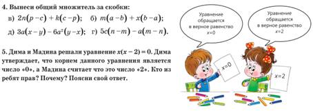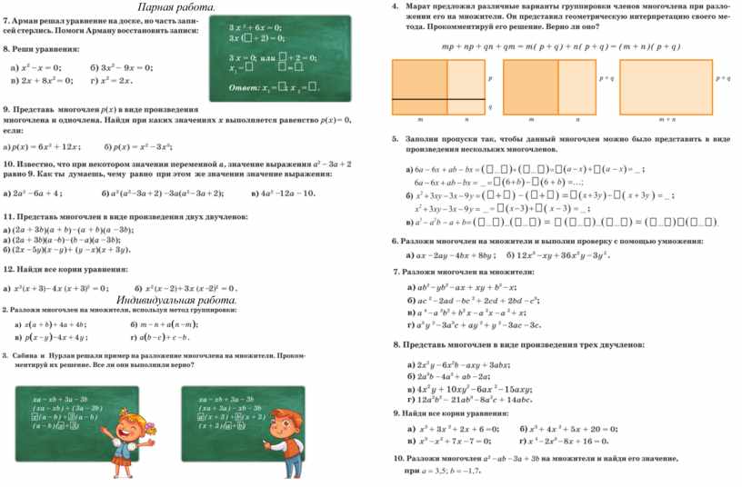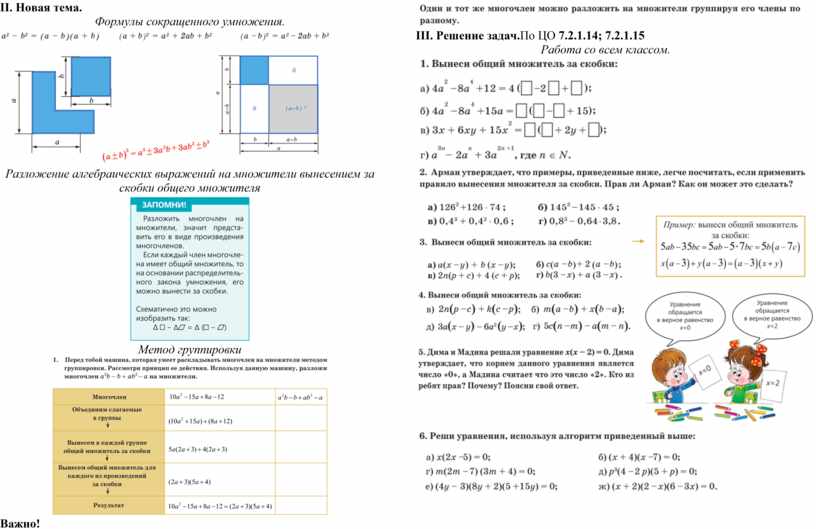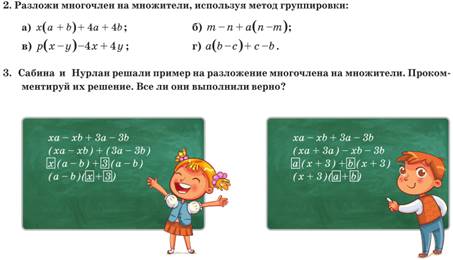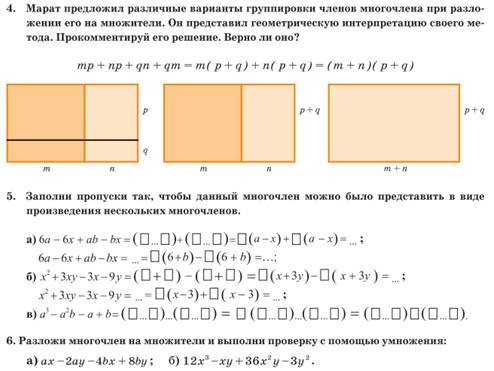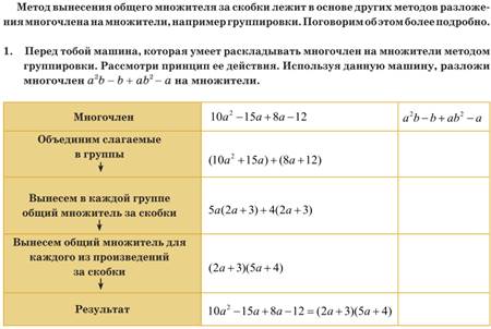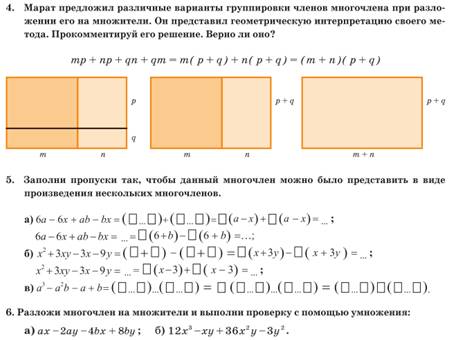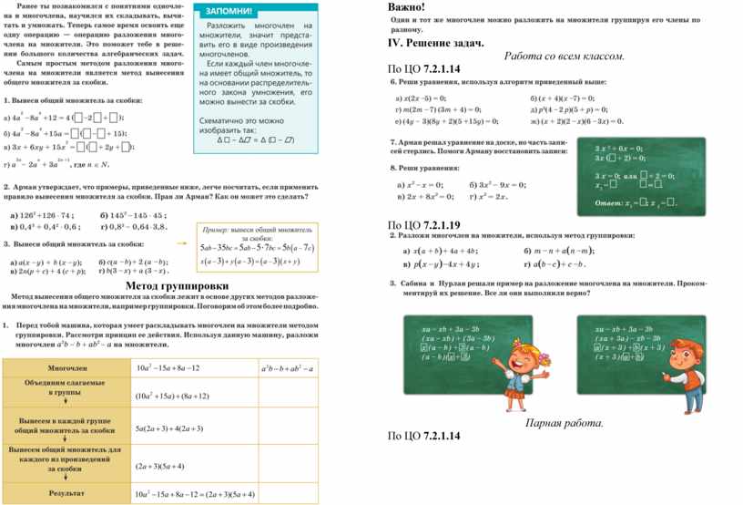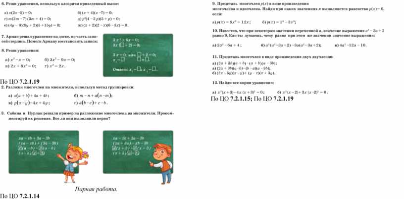 множителя ( 7.2.1.15 уметь раскладывать многочлены на множители способом группировки; 7.2.1.19 интерпретировать произведения вида