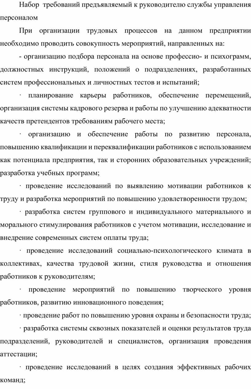 Набор требований предъявляемый к руководителю службы управления персоналом