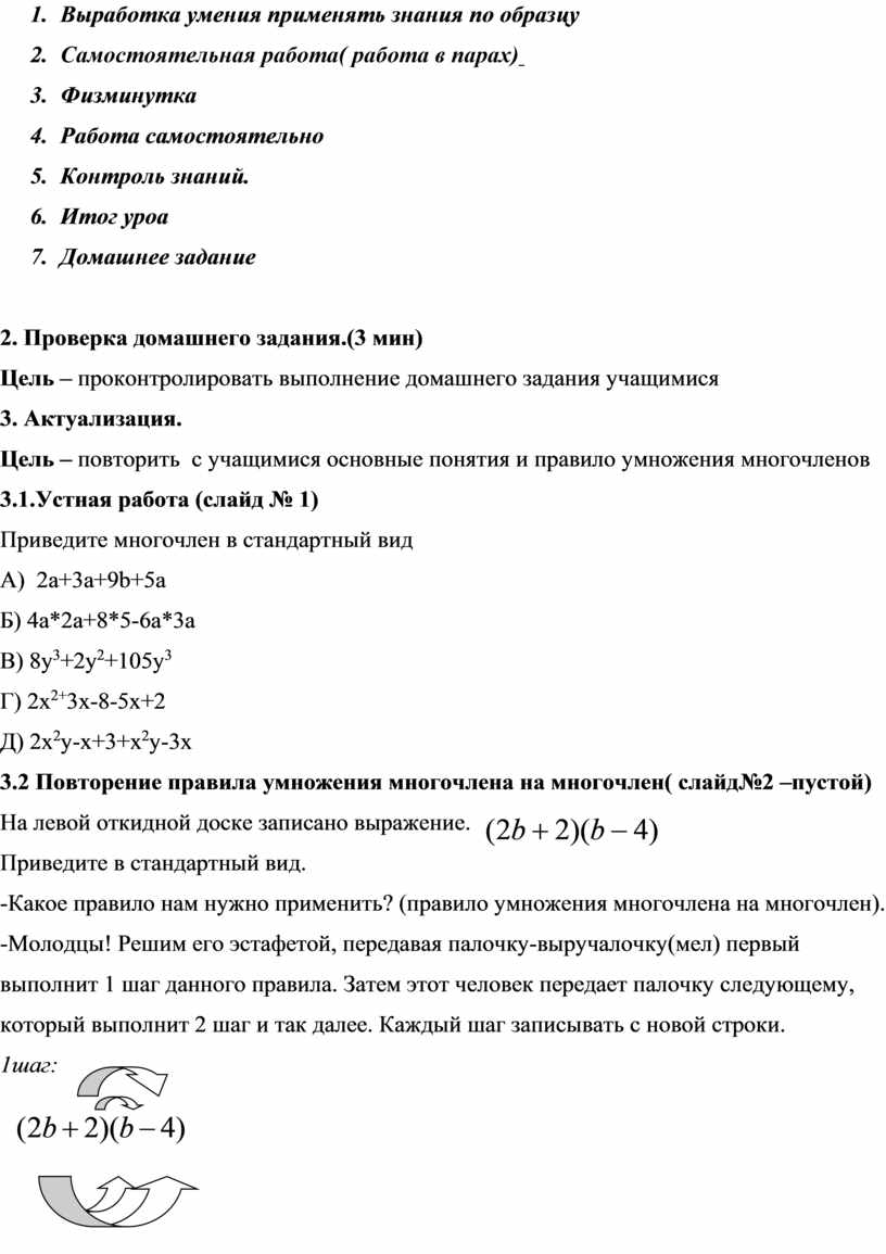 а) учить учащихся умножать многочлены, пользуясь правилом.