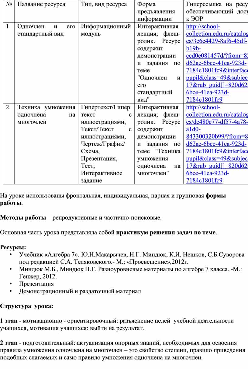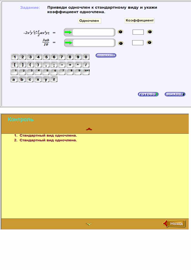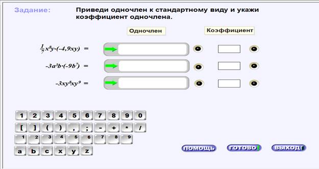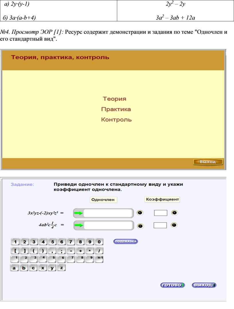 №4. Просмотр ЭОР [1]: Ресурс содержит демонстрации и задания по теме "Одночлен и его стандартный вид".