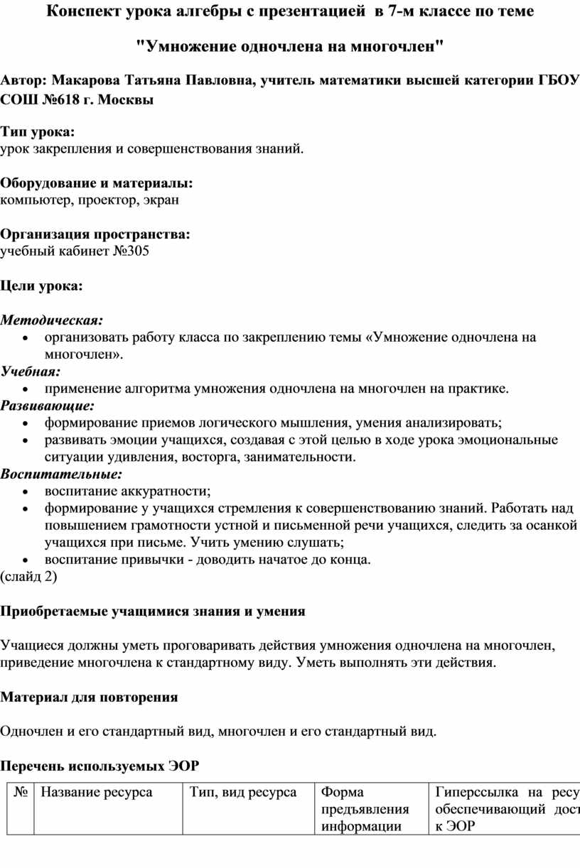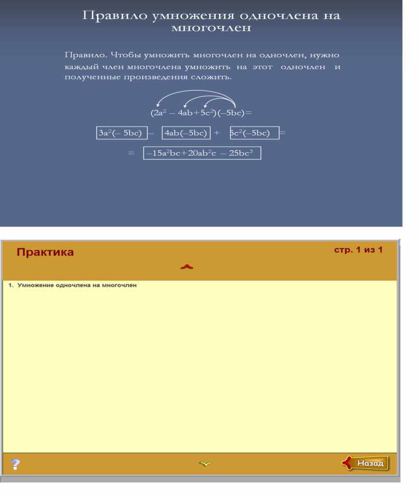 "Умножение одночлена на многочлен"