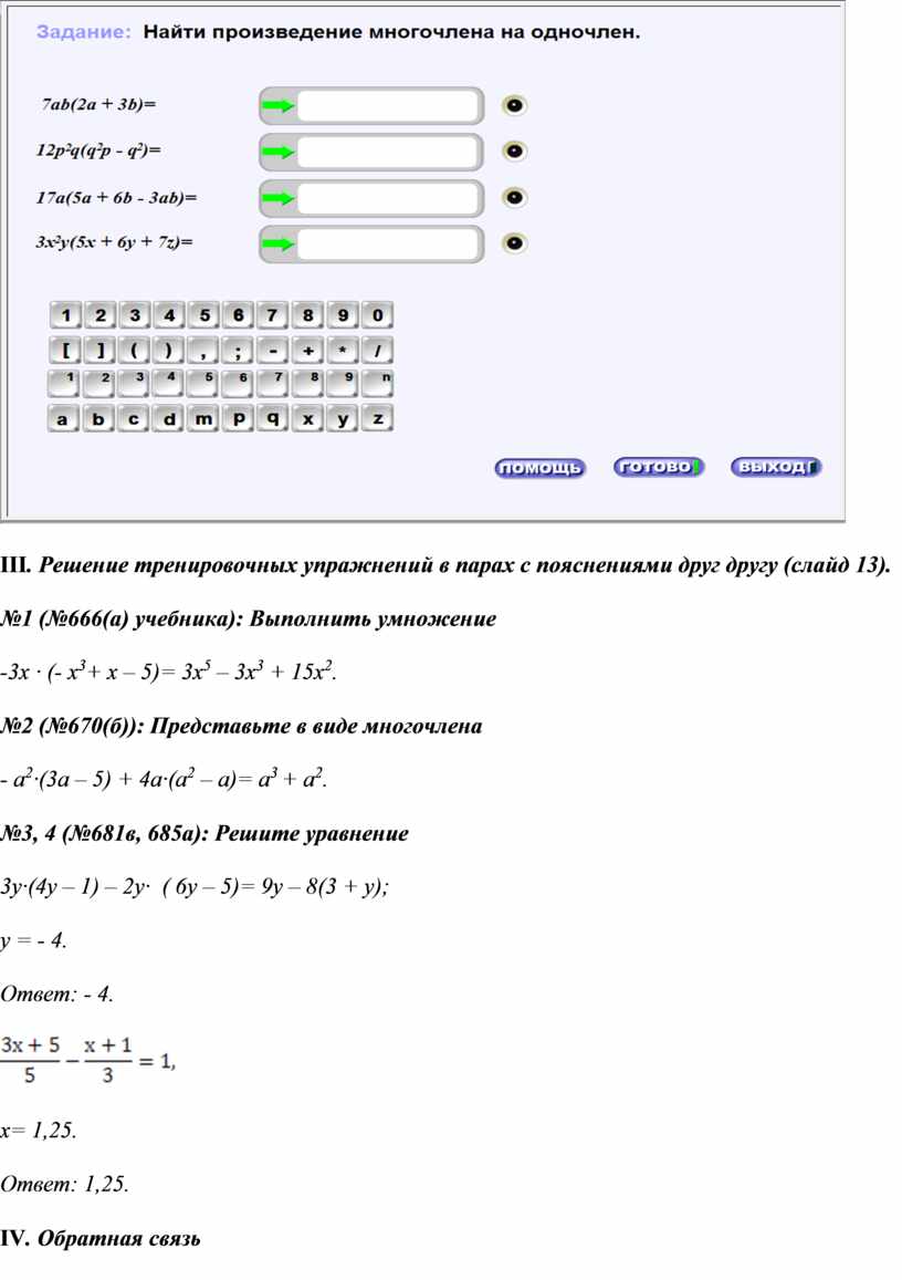 Техника умножения одночлена на многочлен |
