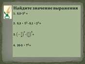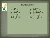 Образовательные: изучение свойств степени с натуральным показателем; совершенствование вычислительных навыков.